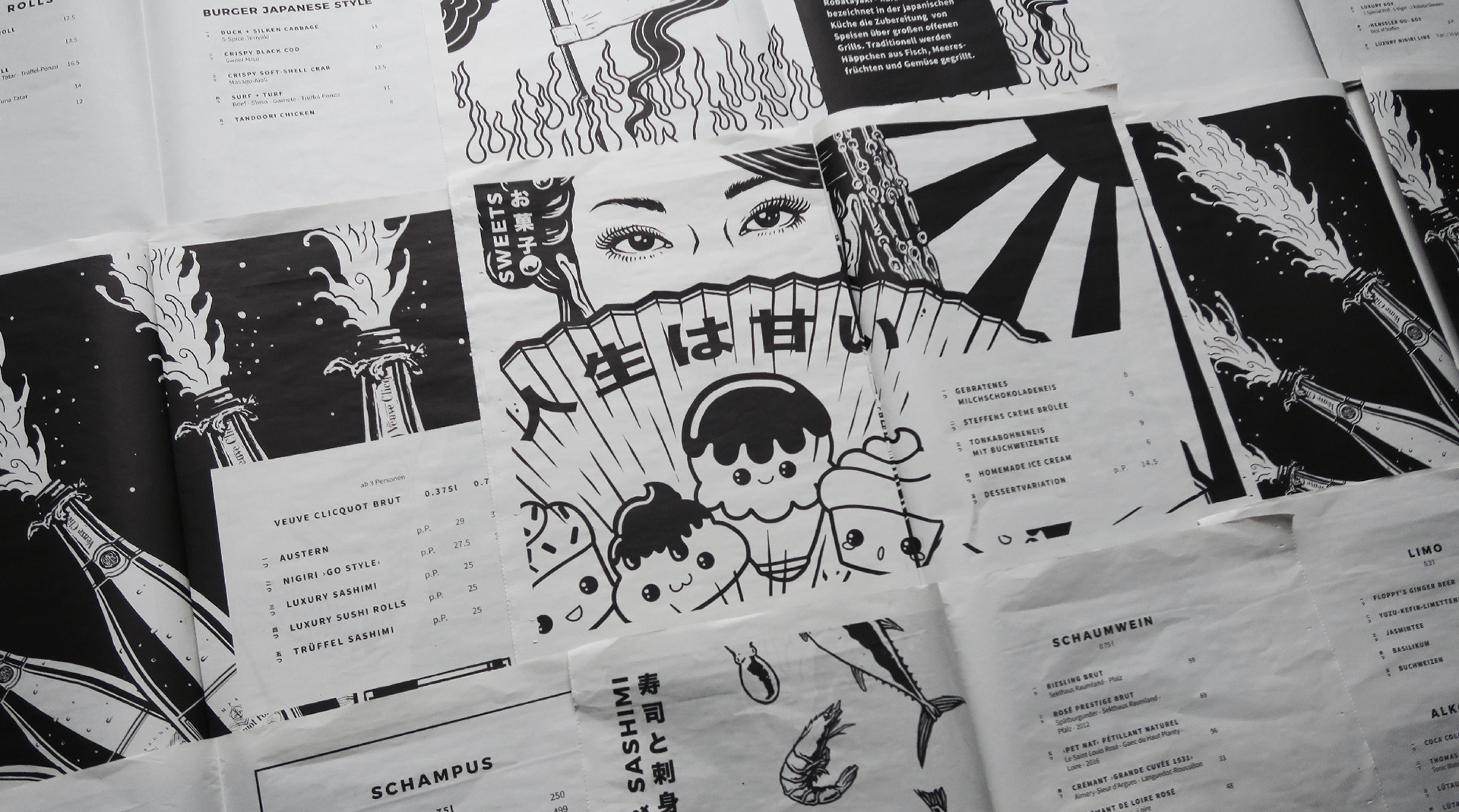 Menu illustrations and logo design for Hamburg based sushi chef Steffen Henssler's latest restaurant GO.
